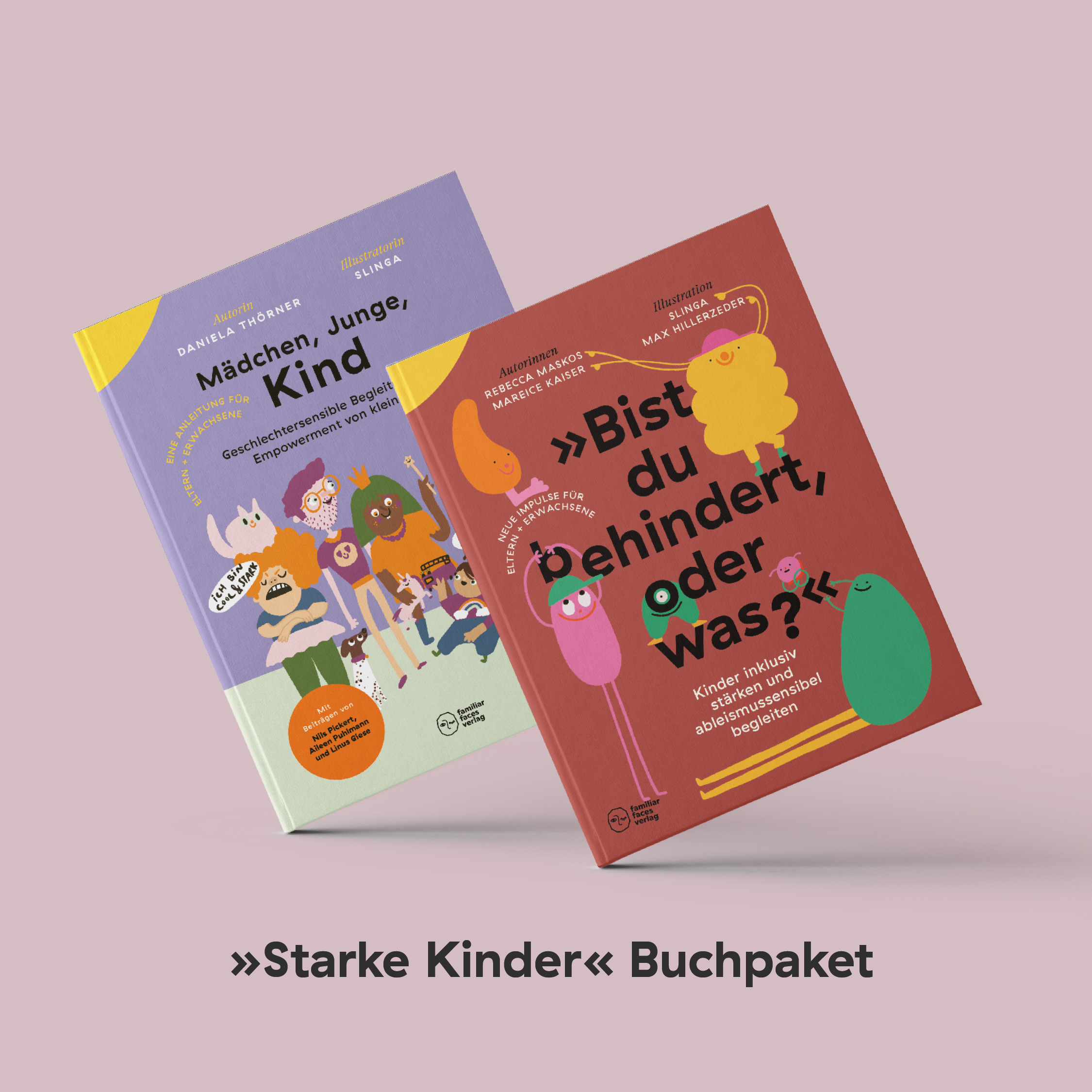 Das Recht auf Gleichbehandlung ist ein Kinderrecht und trotzdem sind wir in der Realität noch weit davon entfernt. Die beiden Bücher bieten viele Tipps und Erfahrungswissen wie wir Kinder ableismussensibel und geschlechtersensibel begleiten können. Die Bücher bieten Hintergründe, Erfahrungswissen einen Glossar mit Begriffserklärungen und viele Anregungen für die Praxis. Die pointierten, humorvollen Illustrationen von Slinga bieten über die Texte hinaus einen neuen Zugang zu den Themenkomplexen.